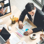 Business people working together conference and studying online